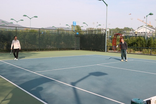 随着裁判长在开幕式上宣读比赛规则。比赛也正式开始,老同志作为本次特殊的校友单独使用了一片场地,相互问候,相互交流,两三好友一起挥拍,切磋球技,其乐融融。通过本次校友会网球比赛既达到锻炼身体目的,也起到了相互见面、相互交流的沟通平台。