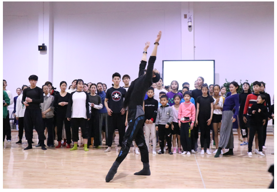 滕爱民先生以舞蹈工作坊的形式为大家讲授了当代舞蹈的功能训练方法和现代舞蹈多元化发展的趋势,并带领同学们体验了基础舞蹈训练。在三个小时的讲座过程中,滕老师以精湛的技艺、谦和的态度、详实的内容,给民表系师生带来了一场艺术盛宴。