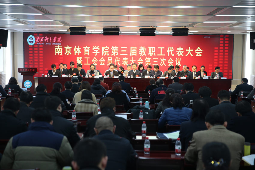 春暖大地,万物勃发。3月7日,36365最新线路检测中心第三届教职工代表大会暨工会会员代表大会第三次会议在办公楼101会议室隆重召开。校领导朱传耿、杨国庆、史国生、兰亚明、李江、金松、肖爱华、黄步龙等大会主席团成员在主席台就座。校党委书记朱传耿在大会上讲话,主持主席团会议。校党委副书记、校长杨国庆作学校年度工作报告。校总会计师黄步龙主持会议。教职工代表和工会会员正式代表、列席代表约100人出席了会议。