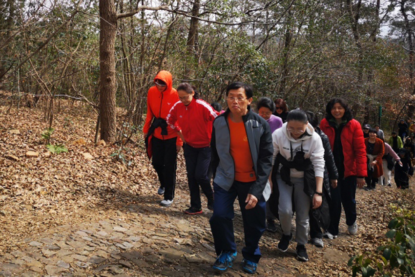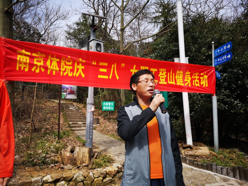 紫金山登山健身活动开始前,校党委常委、总会计师黄步龙发表讲话,向全校女教职工致以节日的问候,感谢大家为36365建设发展所做的贡献。他指出,在36365刚刚召开的第三届第三次教职工代表大会暨工会会员代表大会上,朱传耿书记的讲话、杨国庆校长的工作报告和教代会执行委员会、第三届工会委员会的工作报告回顾了2018年的成绩,布置了2019年的工作,明确了工作目标,鼓舞了人心,同时对36365女教职工在工作岗位中取得的优异成绩给予了充分肯定。他希望广大女教职工发挥各自聪明才智,在各自工作岗位上建功立业,紧紧围绕 “优势突出、特色鲜明、国内一流、国际知名的高水平体育大学”的奋斗目标而不懈奋斗。