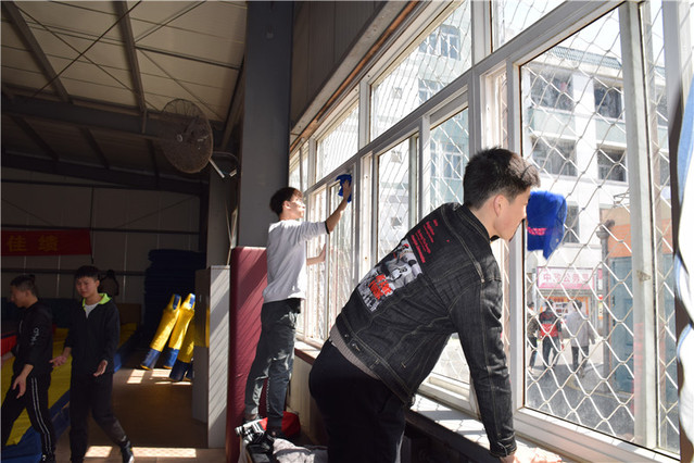 中午12点,各小组在组长带领下,带齐事先所准备好的劳动工具,进入场馆有序地进行力所能及的清洁工作。清洁过程中,每位同学都尽心尽力,毫无怨言。率先完成任务的去帮助未完成任务的同学,充分展现了民表学子关爱同学、无私奉献的雷锋精神。现场虽然尘土飞扬,但是同学们实践雷锋精神的劲头一点也不减。