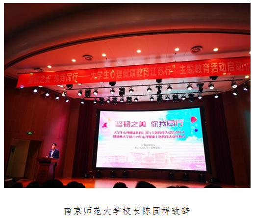 本次活动于南京师范大学仙林校区开展,在南京市仙林片区高校分管心理健康教育工作的校领导、学工处处长、心理健康教育中心主任,学生代表大力支持下开幕仪式圆满落下帷幕。开幕式围绕“坚韧之美,你我同行”为主题,由精彩纷呈的手语操《春暖花开》开场,用舞姿与音乐表达人与人之间爱的传递。南京师范大学校长陈国祥致辞,宣读了心理健康对大学生的重要意义。江苏省教育厅副厅长苏春海就本次活动主题作了精彩发言,指出了高校内积极开展心理健康活动的深刻意义。最后,由全省各高校参会领导共同触屏,正式拉开了本次活动的帷幕。南京师范大学心理学院傅宏教授在开幕式后作了“阳光心态,你我同行”的讲座,并在讲座后就同学日常生活中所出现的具体案例做出了讨论与分析。