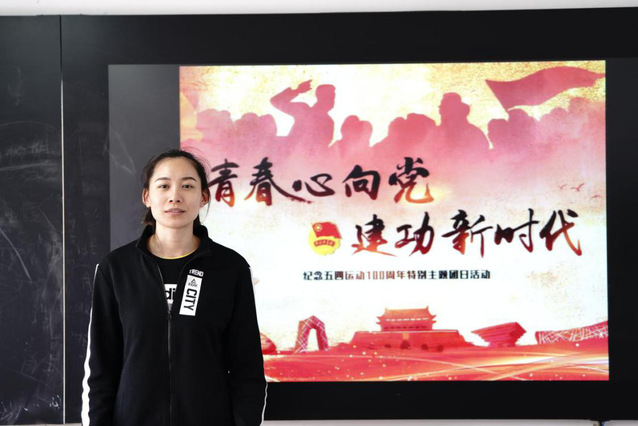 姜倩雯老师用“女排精神”激励全体团员青年奋勇拼搏