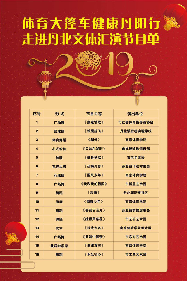 4月21日,由丹阳市新时代文明实践中心主办,丹阳市文体广电和旅游局承办,丹阳市社会体育指导协会协办的“体育大篷车,健康丹阳行”活动在丹北镇飞达人民大会堂圆满落幕。春雨浇不灭体育的激情,激情就是当天的晚会!