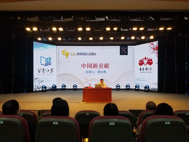 项久雨教授指出:“读书能使人产生智慧,使人顿悟,产生很多收获。读书是一种精神层面的享受,这种享受是无穷的、无止境的。”他认为,目前全民阅读已经上升为国家战略,而江苏省在全民阅读这一系列活动上更是占有较大比重,所以提倡全民阅读、增强文化自信是当代中国人民的应有之义。接下来,他回顾了新中国成立七十年来的风雨过往,论述了如何去理解“中国人民站起来了”、“富起来了”、“强起来了”等话语的内涵。最后,项教授详细介绍了《中国新贡献》这本书的主要内容,以及对当前“新发展理念”的理解。