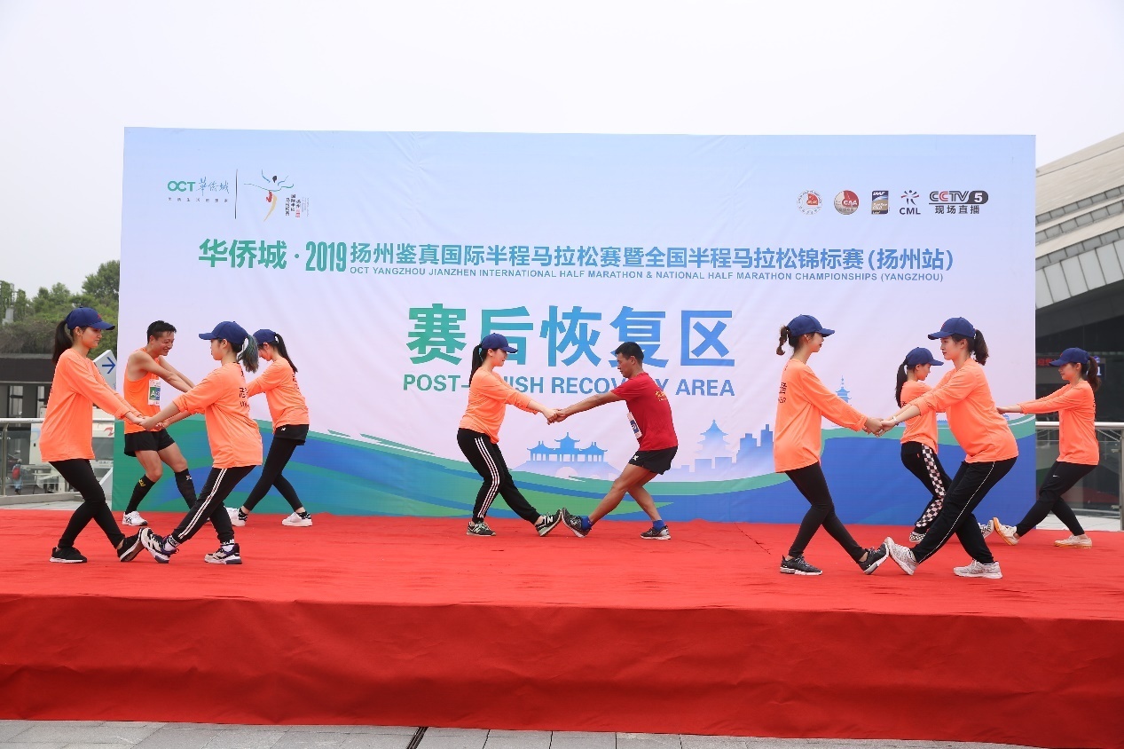4月21日上午,第十四届“扬州鉴真国际半程马拉松赛”于古都扬州鸣枪开赛。运动健康学院孙飙教授带领200余名师生志愿者团队赶赴扬州展开赛后恢复服务。