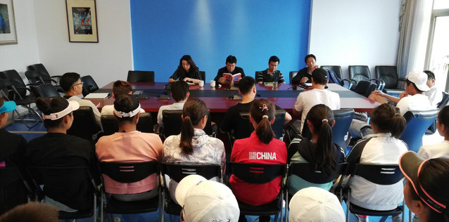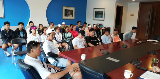5月15日,中国网球学院在澳网厅召开“第二届全国青年运动会”赛前动员大会。中国网球学院院长蒋宏伟、中国网球学院直属党支部书记殷光、中国网球学院常务副院长鲍勤、中国网球学院副院长姜惟以及全体二青会参赛人员出席本次会议,会议由姜惟主持。