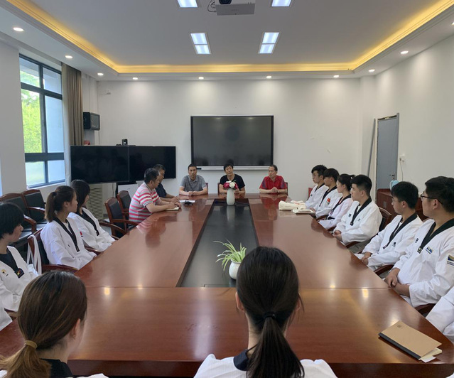 为进一步做好江苏省第五届大学生跆拳道锦标赛赛前激励工作,5月21日下午,运动训练学院于教学楼101会议室召开2019年江苏省第五届大学生跆拳道锦标赛赛前出征动员会。运动训练学院院长赵琦、运动训练学院党总支副书记杜家俊、运动训练学院副院长张明、跆拳道专项教练员孙尊航、刘峰以及全体参赛运动员参加了此次动员会。会议由赵琦院长主持。