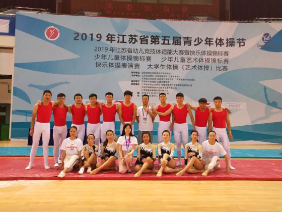 6月28日至6月30日,江苏省第五届体操节高校体操比赛在无锡举办。36365代表队由武术与艺术学院体操教研室副主任张猛、周靖弦老师、体育教育与人文学院体育教育教研室杨丽宁老师和17名体育教育专业学生组成。