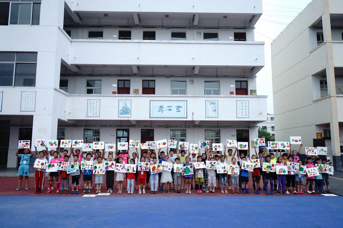 悦来镇九年制学校夏令营小朋友们与志愿代表合影留念