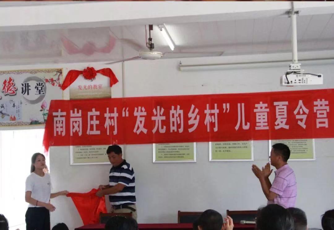 南岗庄村重点突出“发光的乡村”的揭牌仪式。由刘集镇南岗庄村村委会书记韩运松与体育教育与人文学院的石苏苏共同揭牌,拉开了志愿支教活动的序幕。驻村第一书记林海强调,志愿者们要着重培养孩子们体育、艺术方面的兴趣,激发小朋友对美好未来的向往,让儿童得到全面发展,让我们的家乡亮起来。最后,他希望小朋友们和志愿者们在接下来几天里愉快相处,全面发展。