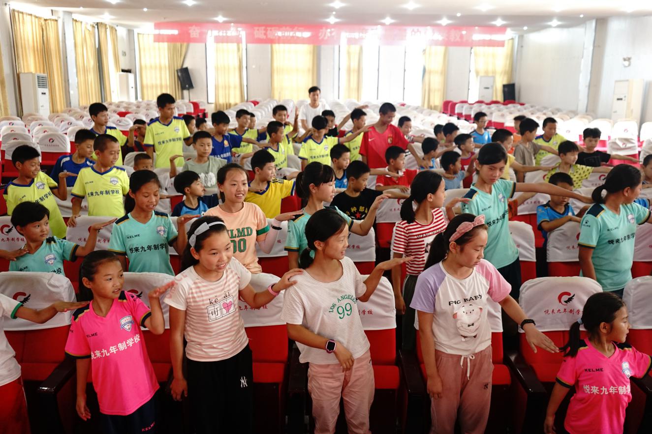 枣林、大方村的夏令营启动仪式,由驻枣林村第一书记刘双喜主持。仪式伊始,沭阳县悦来镇九年制学校校长姜惠明发表致辞,姜校指出:悦来九年制学校以书法和足球为特色,希望在接下来的夏令营活动中,孩子们能与志愿者们共同成长进步。紧接着,驻大方村第一书记黄健为我院志愿者代表王兆麒授旗;指导老师宋树梅与两位村书记及陈少春副校长四人进行揭牌仪式;体育教育与人文学院的尹航同学作为志愿者代表发言,表达了志愿者的责任与担当;悦来镇副镇长徐红枫宣布开营仪式正式启动。