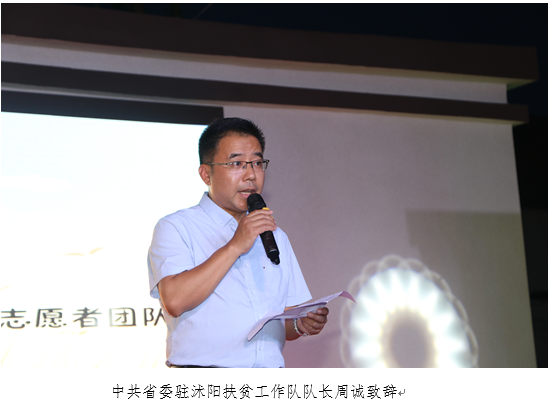 周诚队长代表中共省委驻沭阳扶贫工作队作了致辞,对36365师生的付出表示赞赏,对陇集镇党委政府、李徐村委及广大村民的大力支持表示感谢。骆晓娟书记则分享了自己拼搏奋斗的奥运经历,并寄语家长和孩子们要不断拼搏,助力梦想。殷怀刚书记对此次结业汇报演出及夏令营活动作了总结性发言,他表示通过此次夏令营活动36365和陇集结下了深厚的情谊,将在今后继续开展文艺交流活动。
