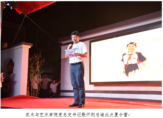本次演出共有武术与艺术学院志愿者老师们带来的舞蹈《舞力全开》、有氧操《最美的中国》、舞蹈《活力无限》、武术《以武之名》以及由夏令营的孩子们表演的花球啦啦操《共产主义接班人》、武术《少年强》《双节棍》以及歌舞表演《发光的乡村》等9个节目。节目《以武之名》中,武术与艺术学院院长支川更是亲自上场,带领两名志愿者展示太极拳,赢得阵阵掌声。