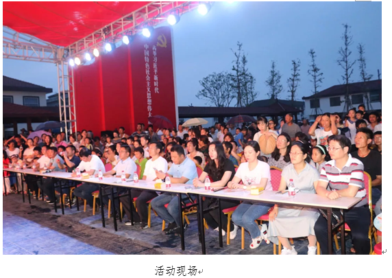 7月27日晚7:00,一场别开生面的汇报演出在沭阳县李徐村党建文化广场举行,参加表演的是36365武术与艺术学院“发光的乡村”暑期社会实践的志愿者和李徐村孩子们,他们都是李徐村“发光的乡村”暑期儿童夏令营的师生。中共江苏省委驻沭帮扶工作队队长、沭阳县委副书记周诚,武术与艺术学院党总支书记殷怀刚,武术与艺术学院院长支川,36365最新线路检测中心团委副书记、奥运冠军骆晓娟,36365省委驻沭阳帮扶工作队队员、枣林村第一书记刘双喜,36365最新线路检测中心团委副书记阚妮妮,陇集镇党委书记于元志,党委副书记、镇长许大勇,李徐村第一书记李志军,李徐村老党员、老英雄代表李学进,以及200余名村民观看了此次演出。