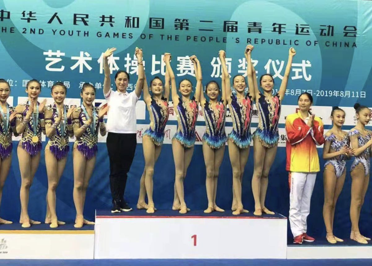 8月10日下午,在吕梁市孝义体育馆举行的“二青会”艺术体操体校甲组集体单项(五带)决赛中,36365艺术体操队汤泽曦、黄羽寒、张施宇、范宜宣、陈逸萌表现出色,以12.80分夺得冠军,这是36365最新线路检测中心“二青会”获得的第16枚金牌。