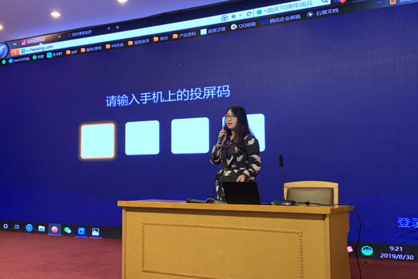 本次培训分为两个阶段,第一阶段邀请到北京世纪超星信息技术发展有限责任公司信息化培训讲师张艺馨作报告。张老师向全体教师演示了如何在手机端使用“超星学习通”创建班级,实现在线考勤、课件共享、师生互动(提问、抢答、投票、调查)、班级公告等功能,以及在教学中使用“超星学习通”提高学生学习积极性实践经验,帮助教师明晰了如何利用“超星学习通”进行师生互动和课堂管理,从而提高课堂教学效果。