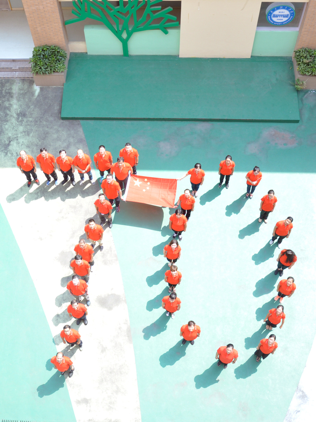 本次活动中,全体教职工还冒着炎热的太阳曝晒,自发排成70的数字造型,发自内心表达对伟大祖国70华诞的祝福,也祝愿祖国的未来更加繁荣昌盛!大合唱活动在嘹亮的《国歌》声中圆满结束,伟大的红歌精神将永远激励我们在工作岗位上不畏艰苦,奋勇前行。