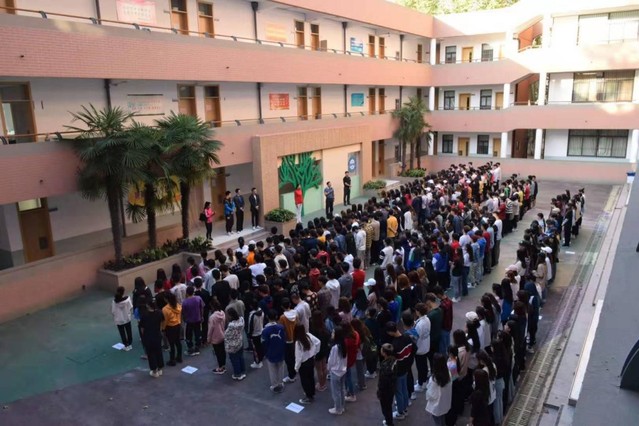 学院党总支副书记陈荣梅公布了本学期的出操计划,并希望同学们遵守纪律、按时出操。