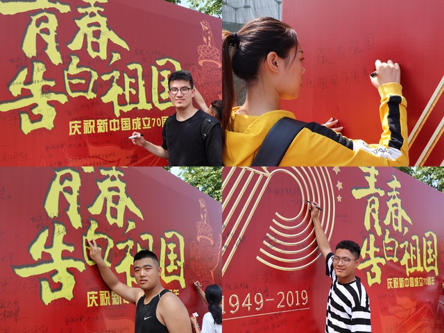 活动目的是激发学生的爱国热情,培养学生的爱国主义精神和社会主义道德风尚,引导学生坚定理想信念,树立远大抱负,并激励广大青年学子不忘初心,牢记使命。活动中,同学们纷纷写下自己对祖国七十华诞的美好祝愿,希望伟大祖国未来更加繁荣昌盛。活动现场气氛热烈。