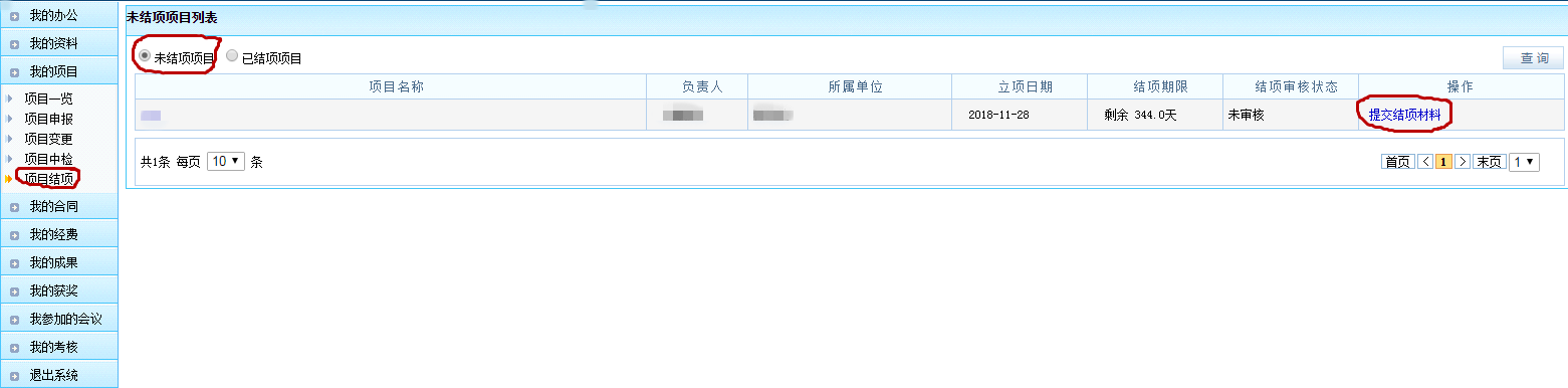 我的项目——项目结项——未结项项目——提交结项材料(上传结项证书、结项报告书、结项成果等扫描件)