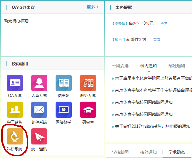 科研在线主页下拉“链接入口”,点击“科研管理系统”