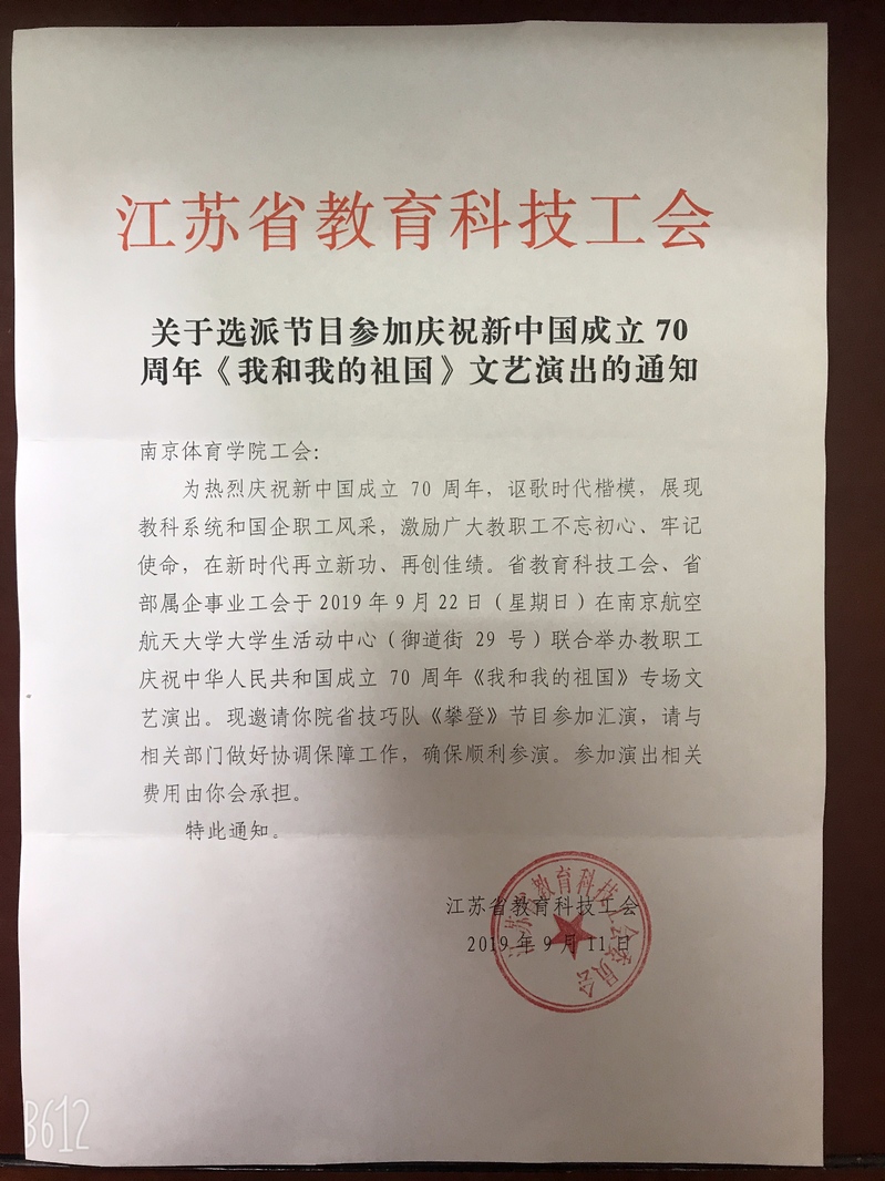 为做好此次文艺展演,展现36365风采,学校党委、行政高度重视,体操学院组织落实,技巧队在完成日常训练任务的情况下,积极配合,认真参加节目合成、彩排及演出,出色地完成了文艺展演。