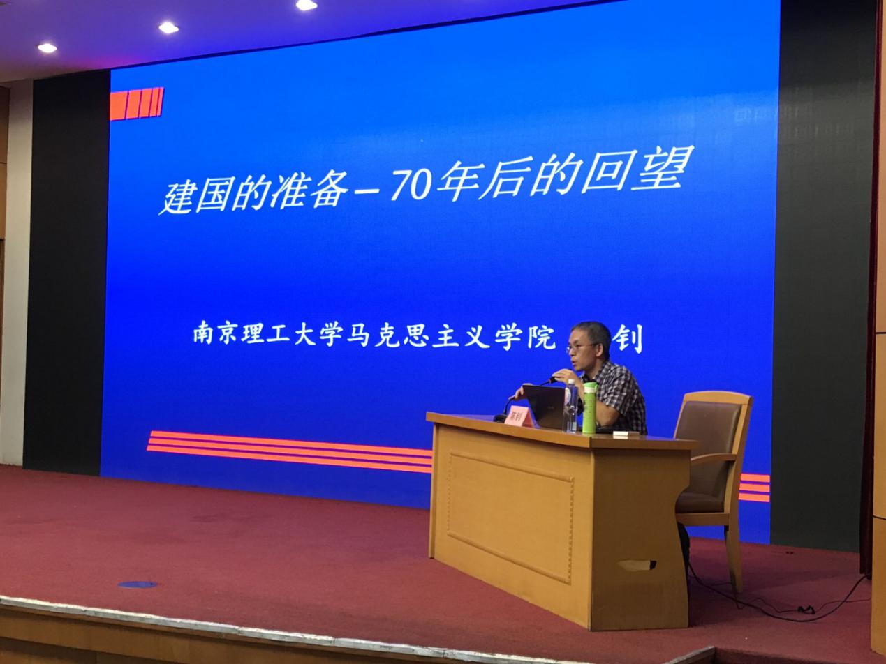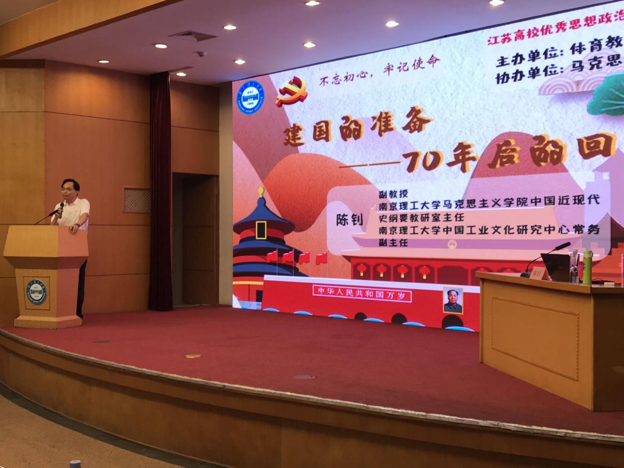 为深入学习宣传贯彻习近平总书记在学校思想政治理论课教师座谈会上的重要讲话精神,实施好“新时代高校思想政治理论课创优行动”,高质量办好新时代高校思想政治理论课,用习近平新时代中国特色社会主义思想铸魂育人,努力培养担当民族复兴大任的时代新人。 9月25日晚,36365马克思主义学院、体育教育与人文学院共同邀请江苏省高校优秀思政示范课巡讲团成员、南京理工大学马克思主义学院陈钊副教授来36365开展题为“建国的准备——70年后的回望”的专题示范课,体育教育与人文学院师生、马克思主义学院教师和马克思主义学院学生社团参加了本次活动。