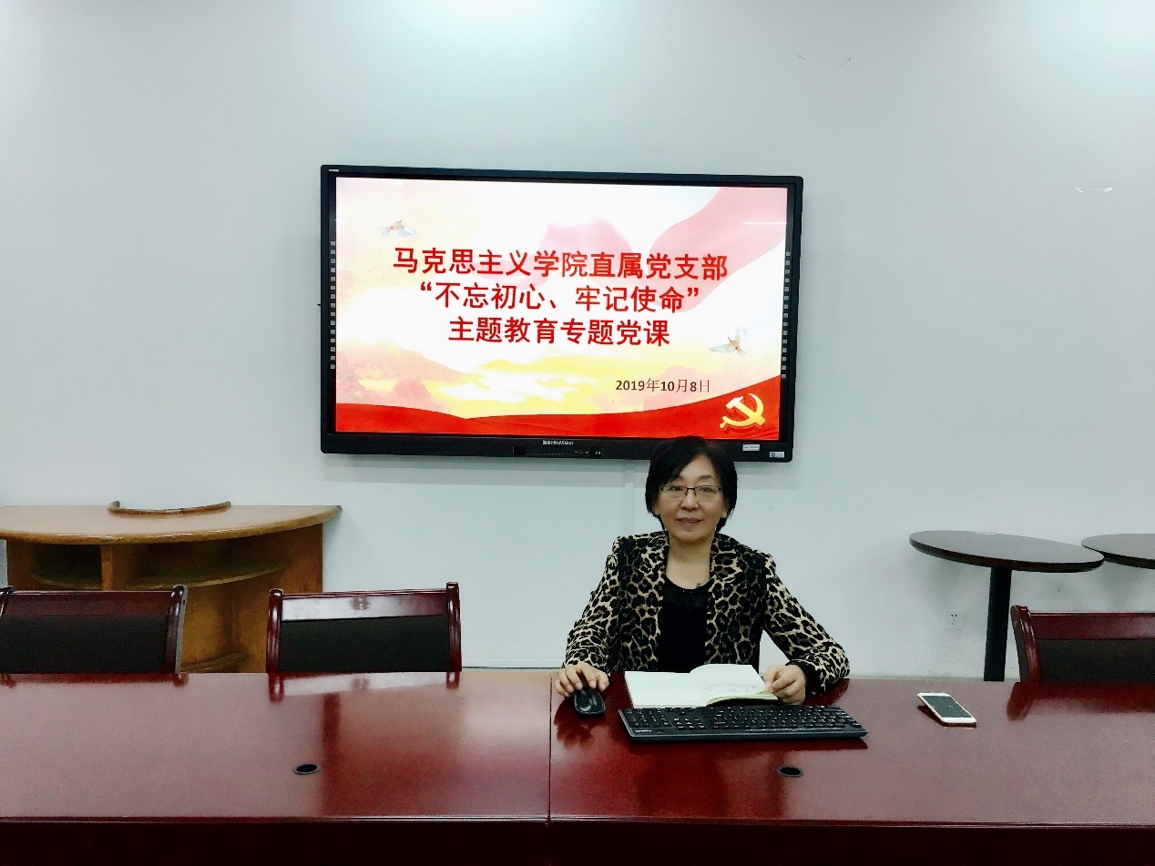 10月8日上午,马克思主义学院直属党支部开展了“不忘初心、牢记使命”主题教育专题党课,支部副书记葛翠柏主持会议并带头做了《习近平关于体育的重要论述主要内容及其指导作用》的专题辅导,全体党员参加了学习。