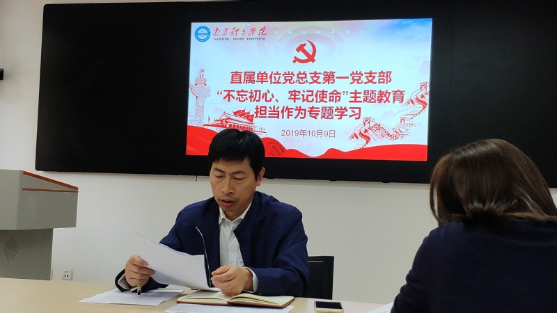 10月9日下午,直属单位党总支第一党支部在图书馆302会议室开展“不忘初心、牢记使命”主题教育,此次学习的专题是“担当作为”。支部书记李明华主持会议,并带领全体党员进行了学习。