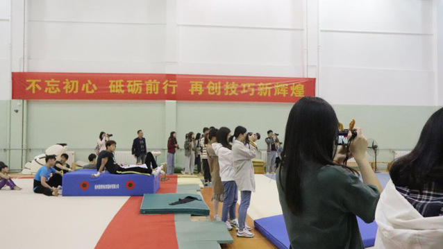 同学们在现场进行采访和拍摄,对部分运动员和教练进行深入访谈,通过自己独特的视角,观察江苏技巧队和乒乓球队的训练生活,寻找触动自己的画面和故事,探索奥林匹克精神的内涵。