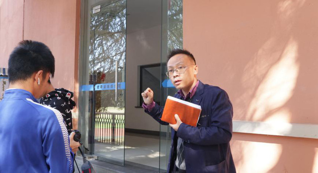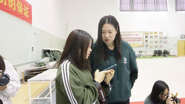 体育传媒系主任李金宝教授、体育传媒系苏蔚平老师和查禹老师对学生的拍摄进行指导。