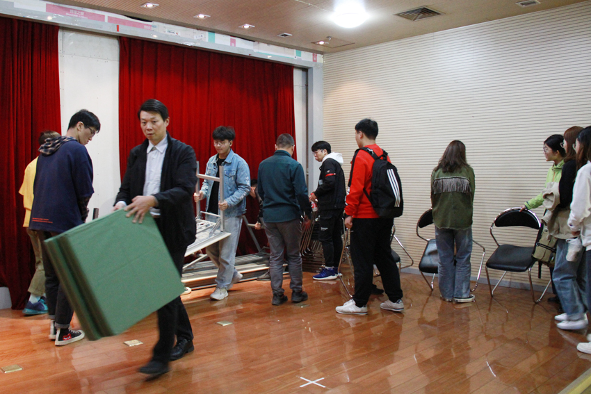 校党委常委、宣传部部长、统战部部长、第十一届体育科学大会宣传组副组长许立俊,党委宣传部副部长、统战部副部长刘洪磊等带领宣传组志愿者们熟悉了方肇周体育馆(新闻发布中心和开幕式主会场所在地)以及恩玲剧场、思源楼、择善楼和计算机科学与技术楼。