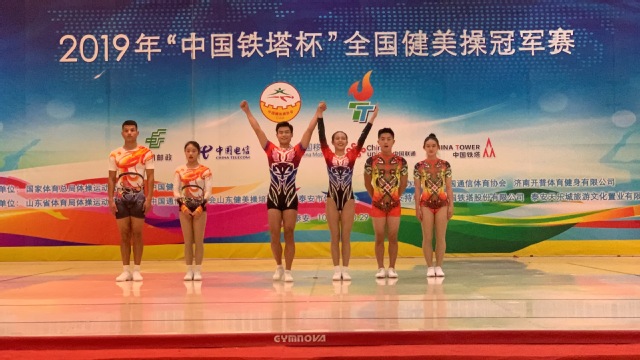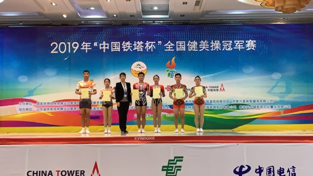 2019年全国健美操冠军赛10月25-29日在山东泰安市隆重举行。本次比赛由国家体育总局体操运动管理中心、中国健美操协会主办。来自全国各地100多支队伍的千余健美操运动员参加比赛。36365健美操队在王连睿与席瑞阳两位教师带领下,10位学生参加了男子单人操、混合双人操和五人操的比赛。