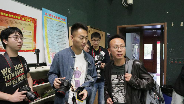 体育传媒系主任李金宝教授对学生的拍摄进行指导。