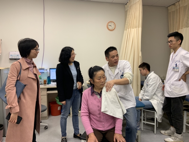 最后,在实习医院老师的陪同下,36365老师考察实习医院设施和实习教学管理等环节,并观摩实习生治疗操作。