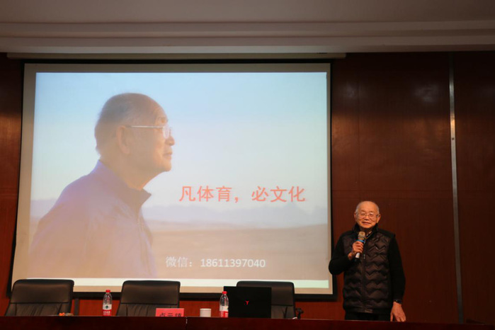 卢元镇教授的报告以体育文化为主题,围绕体育文化的运行轨迹,竞技体育的发展,全民健身文化与休闲的关系,中国体育文化的未来及发展四个方面的内容展开。根植于农业文明的,以中华文明为核心的东方体育文化,以奥林匹克为核心的西方竞技文化成为当今世界两种特别引人注目的体育文化。竞技运动是体育文化的最高形态,竞技运动是体育文化的最高形态,竞技运动项目的文化内涵丰富多彩。全民健身文化,是体育文化的重要组成部分,文化的力量是全民健身的推动力。休闲将重塑全民健身文化,卢元镇教授讲述了加强以休闲为核心的全民健身文化建设的原因及措施。