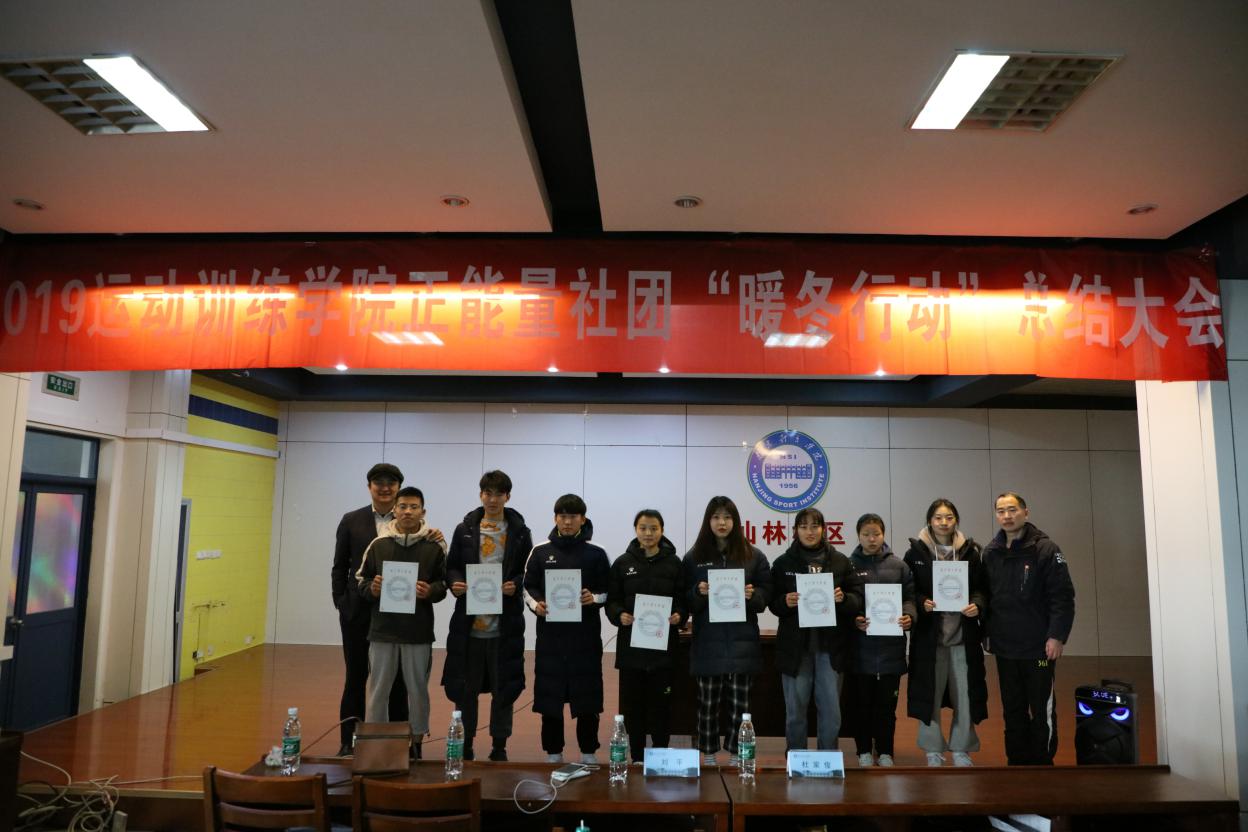 期末临近,运动训练学院正能量社团为期一个月的“暖冬行动”也将告一段落。为表彰一批思想上进、认真负责的学生骨干,也为号召更多同学加入运动训练学院正能量社团,展现36365学子风采,运动训练学院正能量社团于2019年12月30日中午12时举办了“暖冬行动”总结大会。参加活动的有“暖冬行动”赞助人刘平、运动训练学院党总支副书记杜家俊、运动训练学院团委书记龙文蓉、团委副书记刘宸以及全体正能量社团成员。本次活动由运动训练学院团委学生副书记吴金鑫主持。