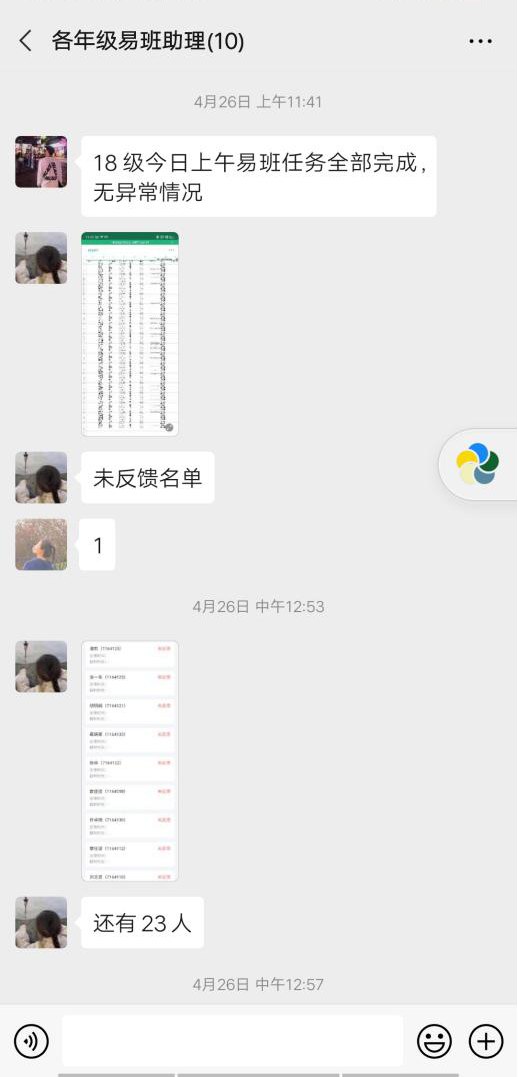 易班平台是重要抓手,能有效反馈学生的假期动向、健康状况、当前位置等。学院创造性地通过年级助理群和班级干部群“两层机制”的运行,有效实现了易班管理的顺畅运行。