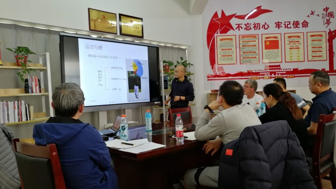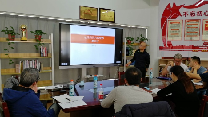 3月14日下午,竞技体育研究院副院长秦学林给游泳队做专题营养知识讲座