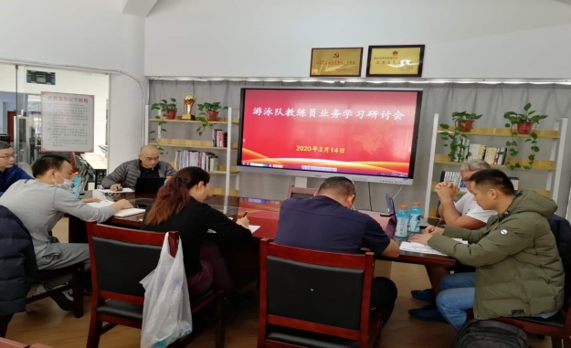 3月14日中午,游泳队召开教练员业务学习研讨会