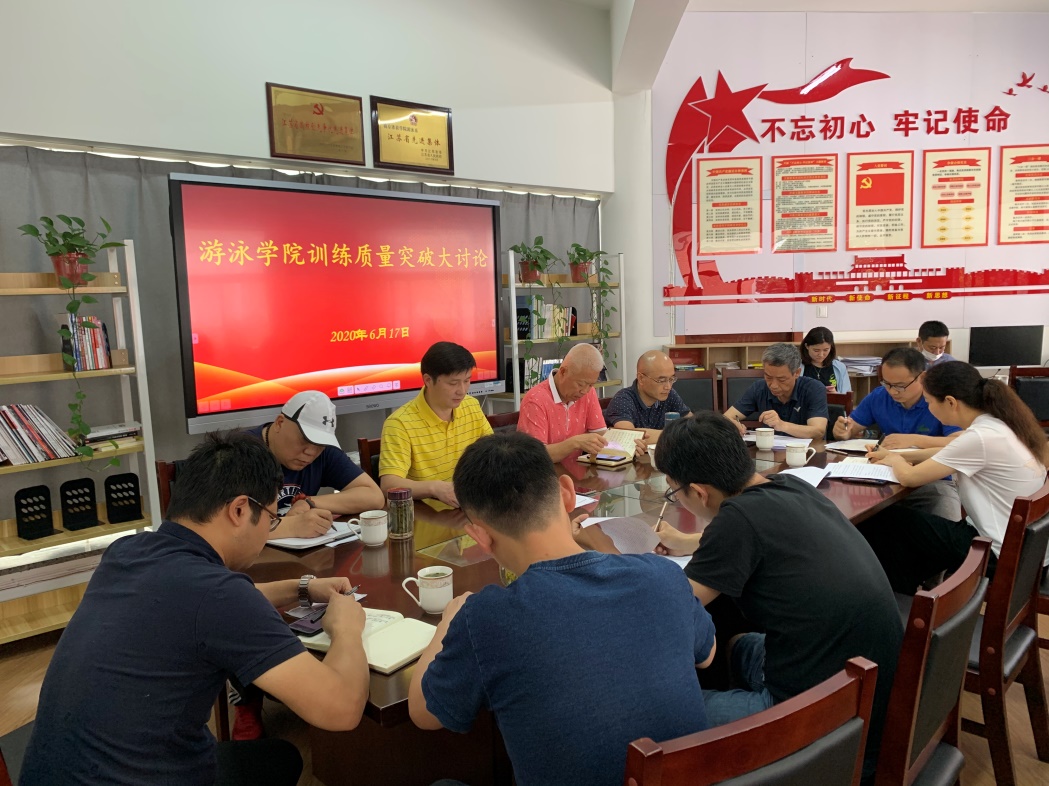 本次专题研讨是在游泳队、跳水队、花样游泳队分别开展“训练质量突破大讨论”后的学院集中研讨。会上,各项目一线主教练和各项目队领队依次发言,紧密结合全运会改革和奥运延期的特定形势,以及各项目备战实际和全运会目标任务,主要从项目训练质量突破之道、赛事暂停情况下如何调控训练节奏、如何发挥教练员在复合型团队中的主导作用、如何处理技术训练和体能训练的关系、长训练周期中如何处理疲劳和恢复的关系等方面开展讨论。