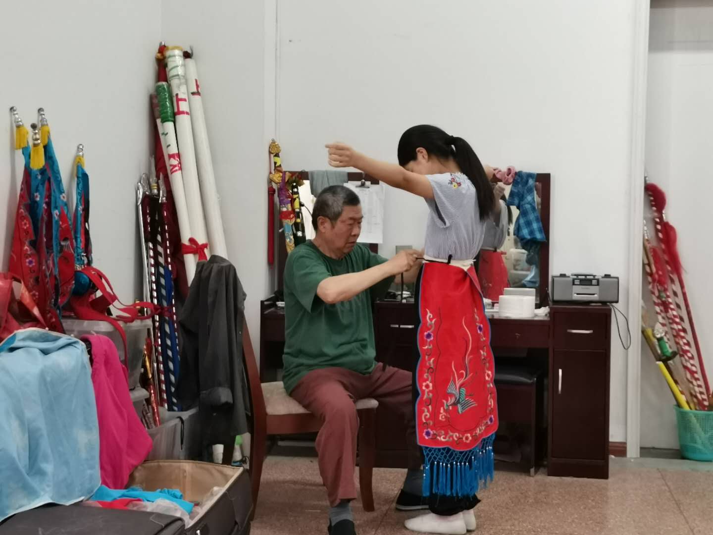 在实践过程中团队成员还遇到了原昆山戏曲协会负责人、昆山小昆班创始人黄国杰老师,并对他进行了简单采访,黄国杰老师骄傲地说:“从这里走出去的学生也是很多的,上海戏剧学校、省戏剧团、无锡戏剧团等等都有我们的学生,现在的影视演员李沁当时也是我的学生。”在采访过程中,团队成员也了解到昆曲传承的一些困境:原来这些老师教小朋友昆曲并非是为了那单薄的薪水,只是想把好的文化传承下去,现在教戏曲老师都要高薪,小昆班的学生又是免费的教学,导致师资力量非常薄弱,黄老师只能亲自上阵。80岁高龄的黄国杰老师每周三四次早上五六点从苏州往昆山赶来上课。和老师谈话中团队成员感受到了老一辈艺术家的沉淀和骄傲,他们笑着讨论现在出名的那些戏剧家,笑着说他们中很多人早就不睬他们了,笑着说没人喜欢看昆剧表演了……