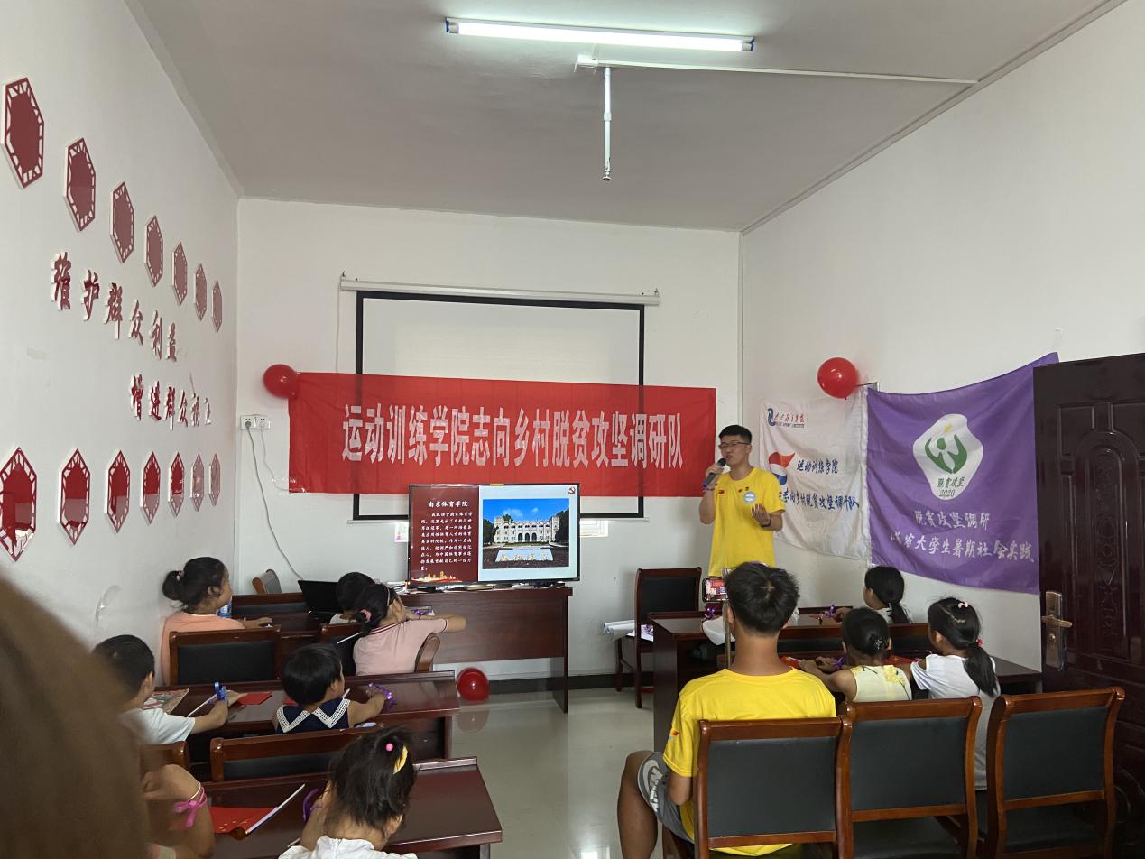 “留守儿童的暑期生活,一直以来都牵动着我们的心。”社工何老师这样说道。结合留守儿童人数和兴趣,“志”向乡村脱贫攻坚深度调研队组织策划了一堂生动有趣的“我的体育梦和中国梦”主题信仰公开课,力求帮助儿童养成锻炼身体的好习惯。为了更好融入孩子们,团队也精心组织了足球趣味小游戏以及简易手工吹画等活动,孩子们玩得开心,学得尽兴。