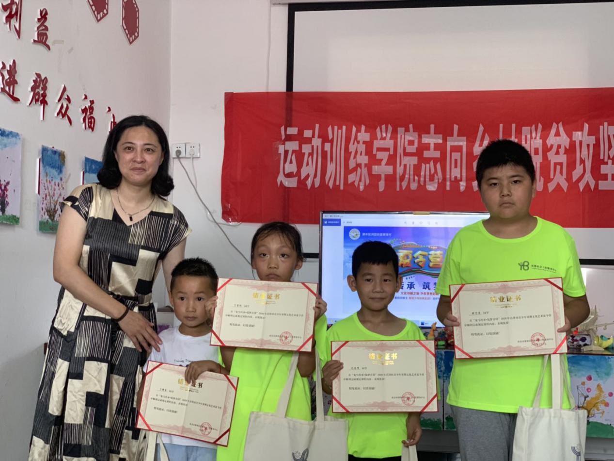 活动中,运动训练学院张亚军书记、喻菊副书记与孩子们悉心交谈,并为大家颁发了奖状和小奖品。喻菊副书记给孩子们寄语:希望大家勤奋学习,志存高远,敢于追逐梦想,将来为实现“中国梦”贡献力量。