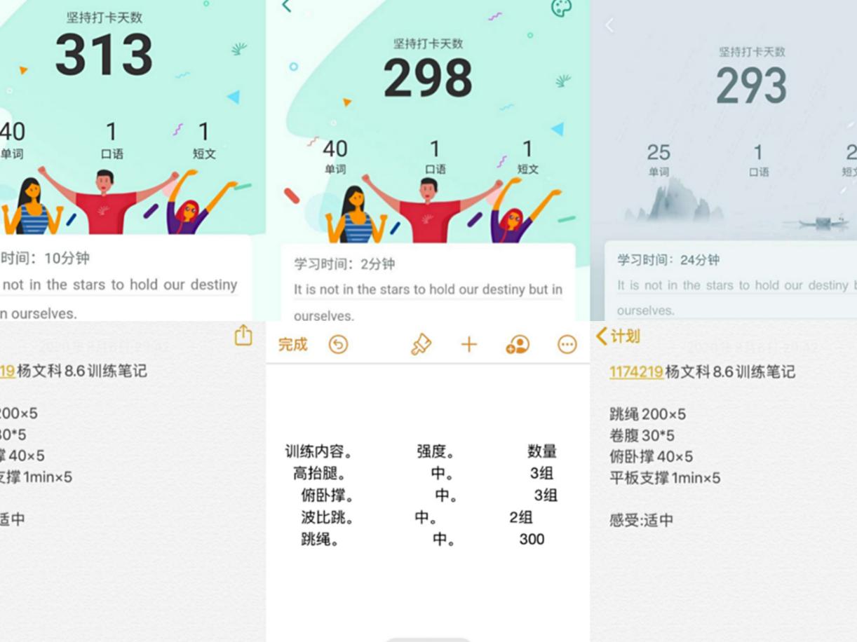 暑期居家打卡期间,学生受益匪浅,其英语单词、口语、阅读等方面的理论知识得到了显著提高;在各专业老师的共同帮助下,学生对于训练打卡的主动性与自主性明显增强,据了解,部分学生利用空余时间针对自身薄弱项目制定训练计划,为即将到来的比赛认真训练打磨,奠定基础;通过前六周的训练,学生两公里的训练成绩在不断地提高,体能不断地提升,各个方面的能力取得显著成效。