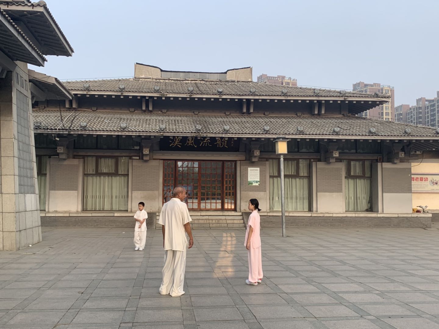 早晨五点半至六点,许多沛县的“练家子”们陆陆续续聚集在了刘氏会馆的广场上,刘氏会馆是汉代开朝皇帝刘邦一脉的宗祠,也是沛县武术的一个晨练点。整个建筑群都是仿汉式的建筑,古朴大气,宽厚稳重,与沛县武术的哲学色彩一脉相承。
