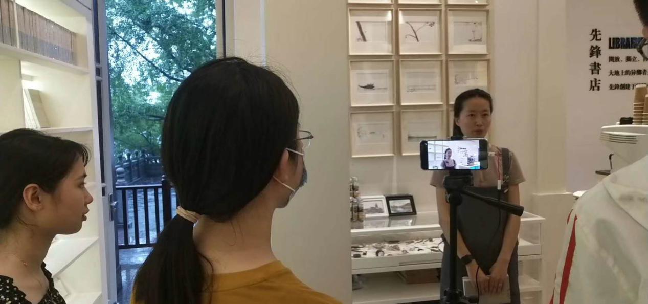 学生在玄武湖先锋书店跟录直播