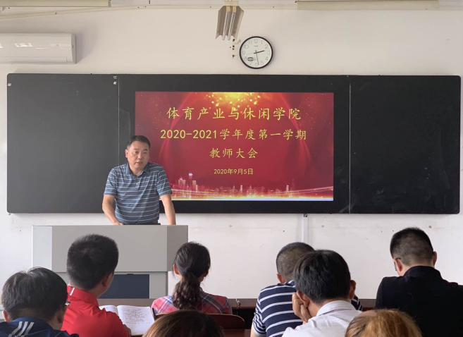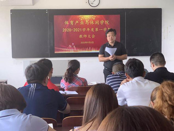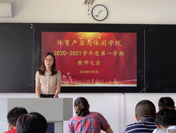 9月5日,体育产业与休闲学院在仙林校区教学楼401教室召开新学期第一次全体教职工大会,全体教师出席本次会议。体育产业与休闲学院院长于翠兰主持会议。