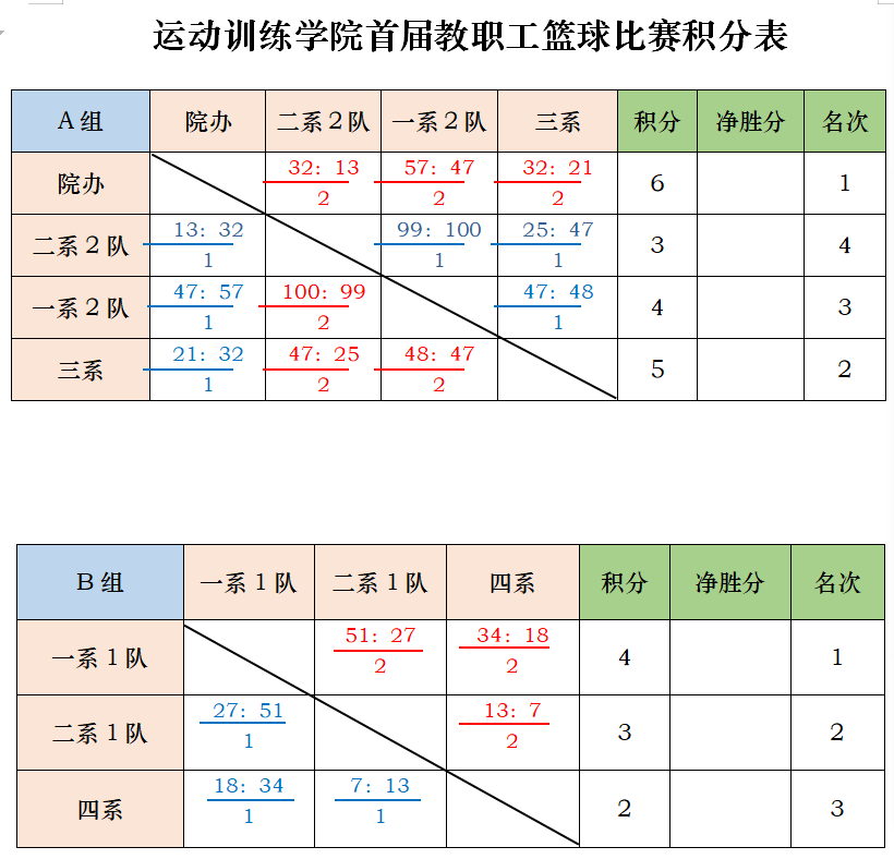 经过两天12场紧张激烈的角逐,篮球赛画上了圆满的句号。院办、一系1队获得了一等奖,三系、二系1队获得二等奖,一系2队、二系2队和四系获三等奖。